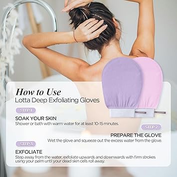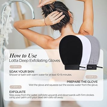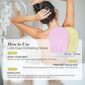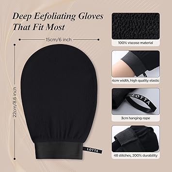 - Gentle Deep Exfoliating: Scrub away dead skin and leave your skin smooth and glowing with the LOTTA Exfoliating Gloves, without any chemical composition.