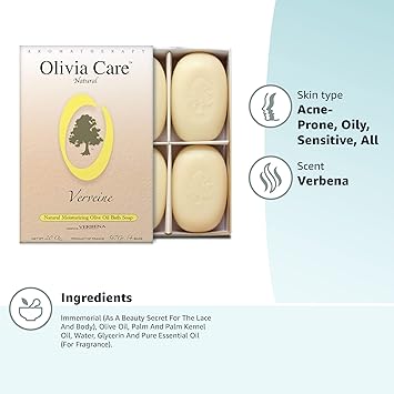 Olivia Care Bath & Body Bar Verbena Soap 4 Pack Gift Box Organic, Vegan & Natural Contains Olive Oil Repairs, Hydrates, Moisturizes & Deep Cleans Good for Sensitive Dry Skin Made in USA