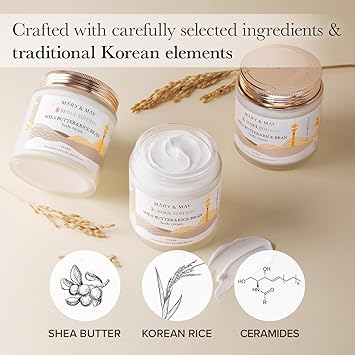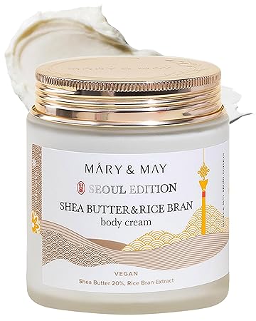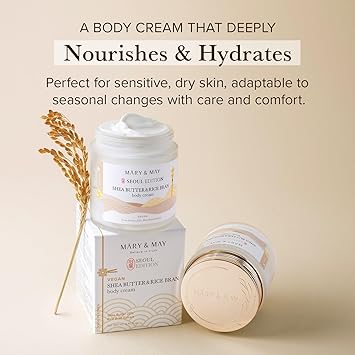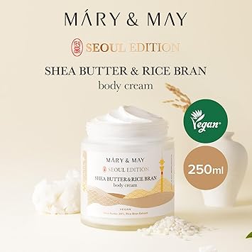 Mary&May SEOUL EDITION Shea Butter & Rice Bran Body Cream - Korean Vegan Boby Moisturizer for Dry and Sensitive Skin with Ceramide - Fragrance Free Body Butter, 8.45oz.