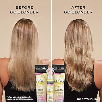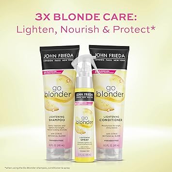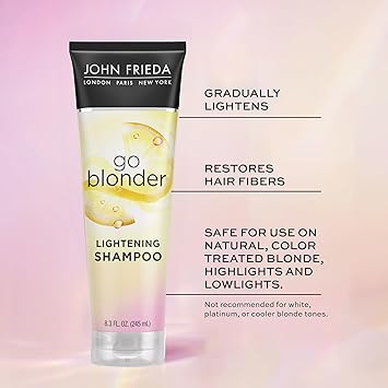 John Frieda Go Blonder Lightening Shampoo for Blonde Color-Treated Hair, Paraben, Phthalate, Silicone and Ammonia Free, Cruelty Free, Vegan Friendly Shampoo 8.3 oz Bottle