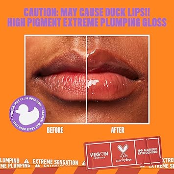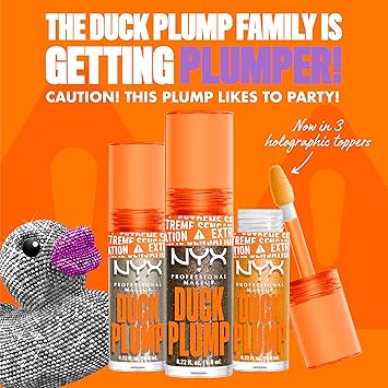 Ducking spicy! Ducking plump! Formulated with spicy ginger and capsicum to plump up your pout. Now in 3 NEW holographic toppers! With extreme plumping power and non-sticky pigment and shine, Duck Plump Plumping Lip Gloss is here to turn up the heat and give you that DUCKING PLUMP.
