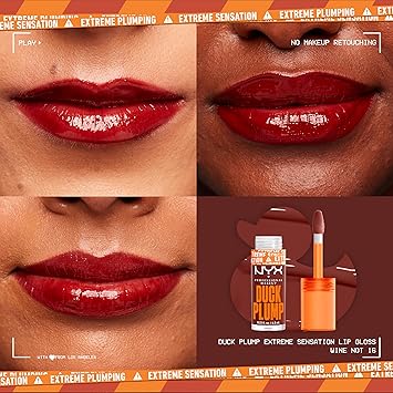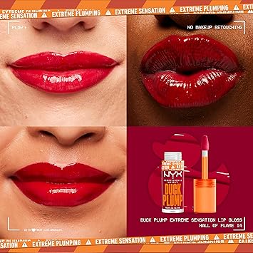 NYX PROFESSIONAL MAKEUP Duck Plump High Pigment Plumping Lip Gloss with Spicy Ginger, Vegan Lip Makeup - Hall Of Flame (True Red)