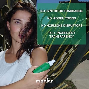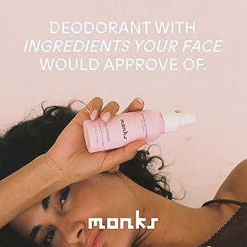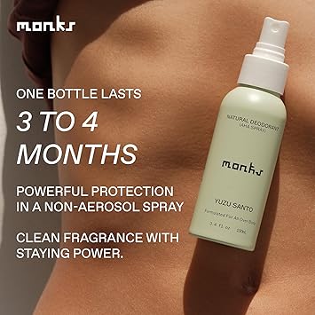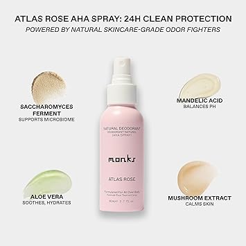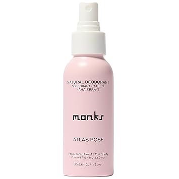MONKS Whole Body Natural Deodorant Spray - For Women and Men, Aluminum-Free, Baking Soda Free, Probiotics, Organic AHA’s, Pure Essential Oils (Atlas Rose)