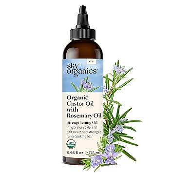 Sky Organics USDA Organic Castor Oil with Rosemary Oil, Strengthening Oil, Pure Potent Blend, Hexane Free, Invigorates Scalp, Supports Stronger, Fuller-Looking Hair, Textured Hair, w ebook