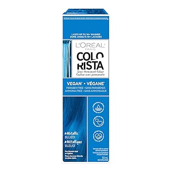 For light blonde or bleached hair. Colorista #Metallic semi permanent hair color allows you to get a supercharge bold look in one easy step! Customize your look and transform your style with other shades from the Colorista collection. Choose from you favorite L'Oreal Colorista shades like our Pink, Blue, and Purple, or mix with the Clear Mixer to create custom pastels. Colorista is an ammonia free hair color and gradually fades with shampooing so you can play again!