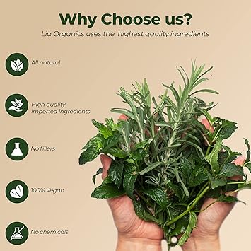 Lia Organics Hair Growth Oil - Organic, Vegan, cruelty free - Rosemary oil, castor oil, pumpkin seed oil, amla oil etc. For thick healthy hair, 1.70 Fl Oz (Pack of 1)