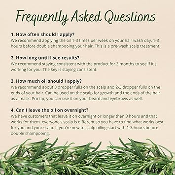 -Ingredients: Extra virgin olive oil, organic Egyptian nigella sativa oil, organic Haitian castor oil, organic cold pressed pumpkin seed oil, cold pressed alma oil, cold pressed linseed oil, organic salvia rosmarinus oil, organic pipertia oil, equisetum arvense herb, fenugreek seeds, organic rosemary, syzygium aromaticum and burdock root.