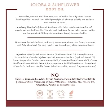 Desert Essence, Jojoba & Sunflower Body Oil Spray, 8.28 fl. oz. - Gluten-Free, Vegan, Cruelty Free - 24hour Moisture, Soothes Skin, Perfect for Sensitive Skin, Illuminating Body Spray