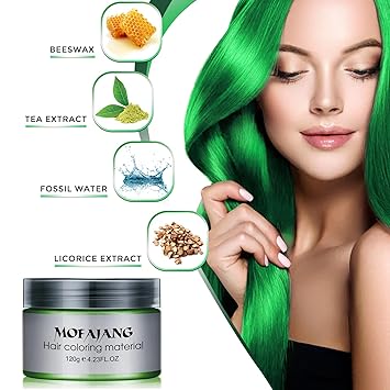 Green Temporary Hair Color Wax - SOVONCARE Washable Hair Dye for Men & Women, All-Day Hold Disposable Hair Styling Clays for Party, Cosplay & Daily 4.23 oz