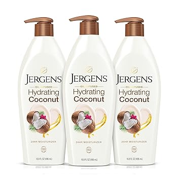 Jergens Hydrating Coconut Body Lotion, Hand and Body Moisturizer, Infused with Coconut Oil, Hydrates Dry Skin Instantly, Dermatologist Tested, 16.8 oz, Pack of 3