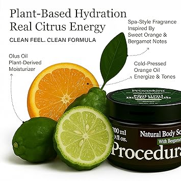 - CITRUS BODY SCRUB WITH BERGAMOT & ORANGE OIL: A bright, Mediterranean-inspired aroma invigorates your routine while salt crystals revive dull, dry areas—the perfect orange body scrub for refreshed skin.