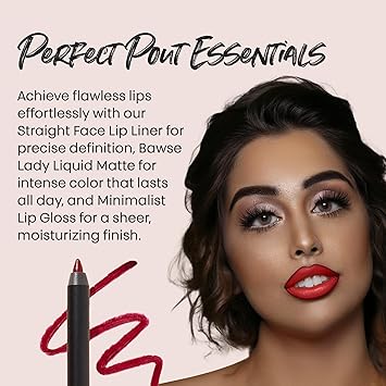 The Lip Bar Vegan Lip Kit, with Straight Facts Lip Liner, Rich Auntie Liquid Matte Lipstick, and Vixen Non-Stickly Lip Gloss, 3 pieces