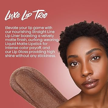 - COMPLETE SET - Curated kit for the perfect pout with full sizes of our Straight Livin' (Deep Brown) Lip Liner, Naturalista (Soft Brown) Liquid Matte Lipstick, and Extra (Brown Shimmer) Non-Stickly Lip Gloss