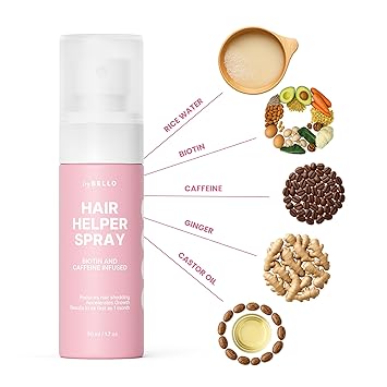 TryBello Hair Helper Spray - Growth Serum With Biotin & Castor Oil - Caffeine Infused Treatment for Thicker, Fuller Hair - Repair Thinning Naturally - Vegan, Cruelty-Free Formula