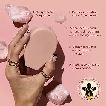 - Cleansing & Moisturizing Soap - Featuring a dual-action formula that cleanses your skin without drying it out, this artisan soap contains jasmine oil for a mood-enhancing, delicate scent. Prickly pear cactus maintains your skin’s natural moisture balance, while pink rose clay exfoliates
