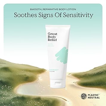 - REPARATIVE BODY LOTION - A light, pillowy body lotion that soothes signs of sensitivity and restores your body’s compromised skin back to health. Skin conditioning oils join forces with barrier-supporting ingredients so Great Body Relief can deeply moisturize skin without leaving a greasy residue. Care for all the skin you're in and let this plush lotion repair your body’s overall skin barrier for less breakouts, irritation, and redness.