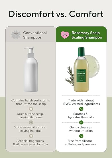 AROMATICA Rosemary Scalp Scaling Shampoo - Korean Hair Care with Thinning Hair Loss Natural Rosemary Essential Oil for Women - Vegan Hair Growth - Free from Sulfate, Silicone, and Paraben (13.53 oz)
