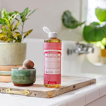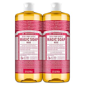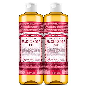 Dr. Bronner's Pure-Castile Magic Liquid Soap (Rose, 16 Ounce, 2-Pack)- Made with Regenerative Organic Certified Oils, 18-in1 Uses: Face, Hair, Hand & Body Soap, Laundry, Pets- Concentrated, Vegan