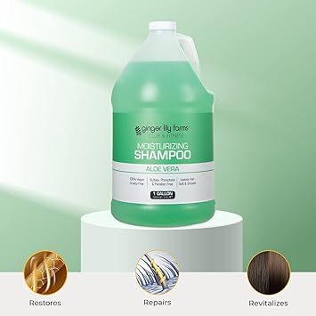 Ginger Lily Farms Club & Fitness Aloe Vera Moisturizing Shampoo smooths, restores and revitalizes dry hair with lasting moisture for incredibly soft, shiny hair. Our moisturizing shampoo works with your hair’s natural oils to deeply penetrate every hair strand and improve the overall health, look and feel of your hair. Dry hair is instantly restored and revitalized. Ginger Lily Farms Club & Fitness Hair Shampoo is enriched with naturally derived botanicals to provide weightless hydration to all hair types and is paraben, sulfate, phosphate and gluten-free. The cruelty-free conditioner is 100% vegan and PETA certified. Recommended for commercial use in locker rooms, hair salons, and home use for refills.