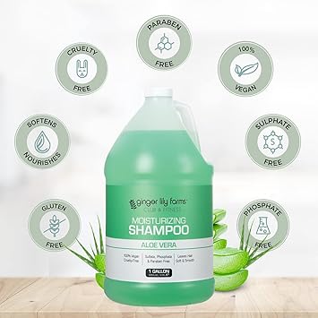 Ginger Lily Farms Club & Fitness Moisturizing Shampoo for All Hair Types, 100% Vegan & Cruelty-Free, Aloe Vera Scent, 1 Gallon (128 fl oz) Refill