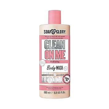 Soap & Glory Clean On Me Moisturizing Body Wash - Creamy Body Soap & Skin Cleanser with Built-In Body Lotion for Dry Skin - Bergamot & Rose Scented Body Wash for Women & Men (500ml)