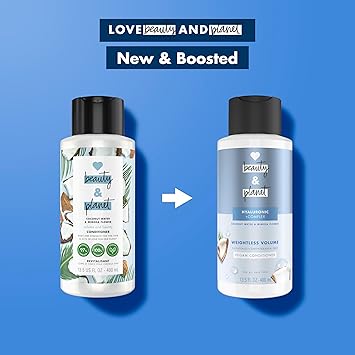 Get 3X volume and healthier-looking hair* with Love Beauty and Planet's Coconut Water & Mimosa Flower Weightless Volume shampoo and conditioner! This lightweight hydrating blend with Coconut Water and our Hyaluronic Acid Complex with natural bond-strengthening actives, adds 48-hour weightless hydration, while giving a boost of body, bounce and fullness!* Like all Love Beauty and Planet hair products made with clean ingredients, it's PETA-certified cruelty-free and vegan, sulfate-free, silicone-free, paraben-free, dye-free and formulated without phthalates and microplastics. Plus, this conditioner formula is 97% naturally-derived, 100% biodegradable** and packaged in a 100% recycled bottle. How to Use:You know it - after using Love Beauty and Planet's Coconut Water & Mimosa Flower Weightless Volume shampoo, massage this lightweight conditioner from mid lengths to ends, rinse and go easy on the tap. On a mission to clean up beauty for all, enjoy more good hair days with Love Beauty and Planet's clean formulas, indulgent fragrances & a little love for the planet! *shampoo & conditioner system, vs. flat, limp hair **Ingredient biodegradation based on OECD test methods (301, 302 and/or 310) and Principles. ***using system