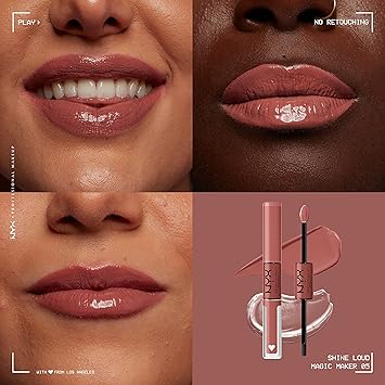 NYX PROFESSIONAL MAKEUP Shine Loud, Long-Lasting Liquid Lipstick with Clear Lip Gloss - Magic Maker (Dusty Nude Mauve)