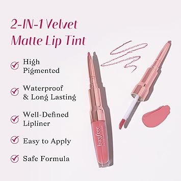 bayfree 2-IN-1 Lip Liner and Lip Stain, High Pigmented Long Lasting Velvet Lip Tint, Well-Defined Lipliner, Weightless Waterproof Not Animal Tested, Matte Finish Makeup