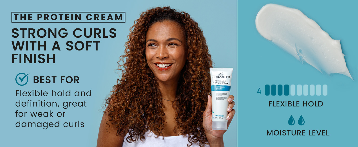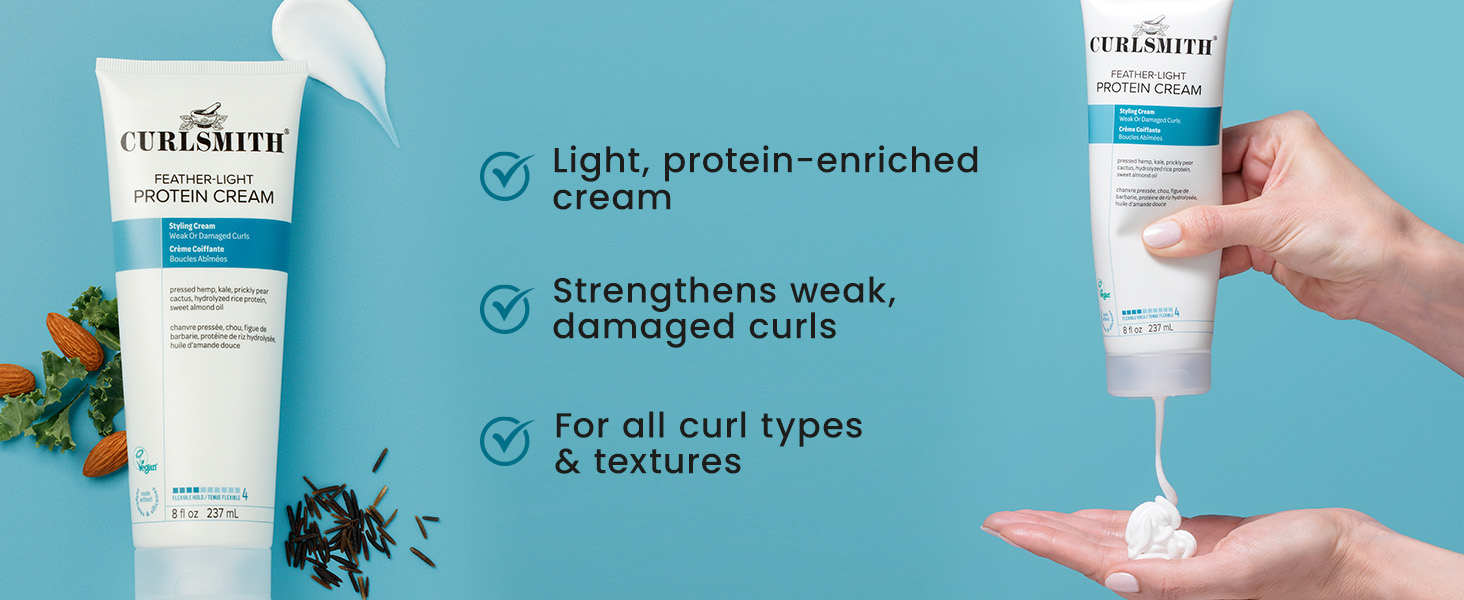 CURLSMITH Feather Light Protein Cream - Flexible Hold Curl Cream, Protein-Rich Styling Cream for Curls, For All Curl Types, Best for Weak and Damaged Curls, Vegan & Cruelty Free (8 oz)