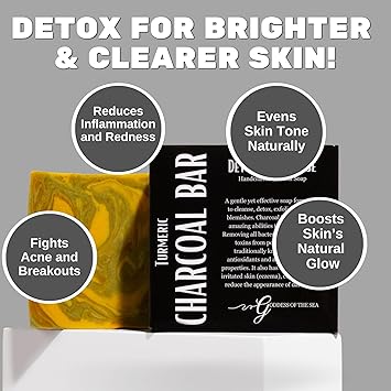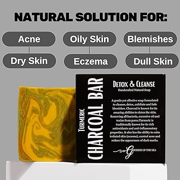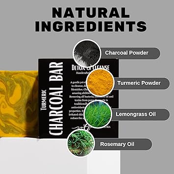 Turmeric Charcoal Bar - Natural Face & Body Soap for Acne, Dark Spots & Detox | Even Skin Tone | Deep Cleansing | Handmade, Organic, Vegan with Activated Charcoal & Turmeric (1)