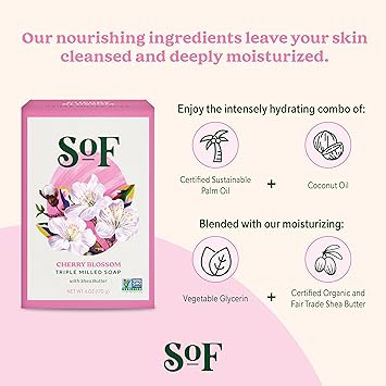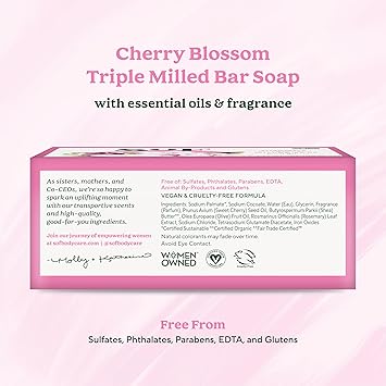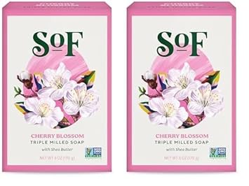 Cherry Blossom Clean Bar Soap by South of France Clean Body Care | Triple-Milled French Soap with Organic Shea Butter + Essential Oils | Vegan, Non-GMO Body Soap | 6 oz Bar
