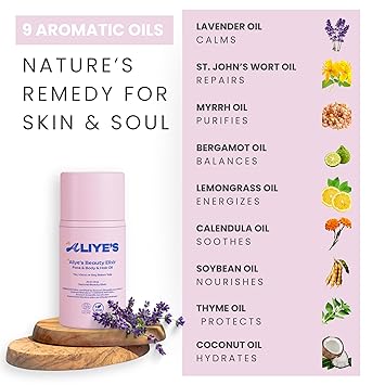 ALIYE'S A Beauty Elixir - All In One - Face & Body & Hair Oil Ecocert/Cosmos Natural Certified, Vegan, Non-GMO, Alcohol - Silicone Paraben Free, Derma
