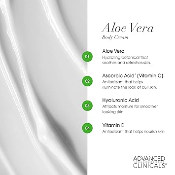 - ALOE VERA CREAM SOOTHES, HYDRATES AND REFRESHES DRY SKIN - This Aloe Vera-infused body cream delivers hydration while calming dry, dehydrated skin. It helps improve skin texture and radiance, leaving skin visibly softer, smoother, and more refreshed. Formulated by cosmetic chemists, for women and men looking to add extra hydration to their skincare routine.