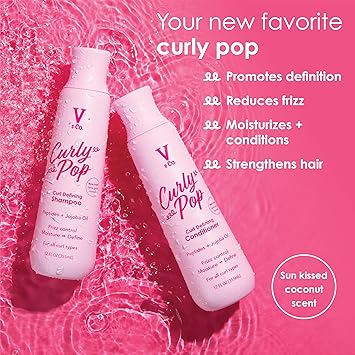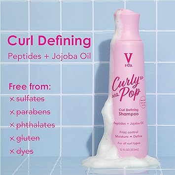 V&Co. Beauty Curly Pop Curl Defining Shampoo - Sulfate Free & Paraben Free Moisturizing Hair Care with Peptides, Amino Acids & Jojoba Oil for Hydration, Frizz Control & Healthy Curls - 12 fl oz