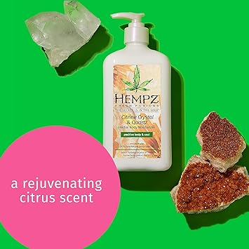 Hempz Body Lotion - Citrine Crystal & Quartz Daily Moisturizing Cream, Shea Butter Hand and Body Moisturizer - Hemp Extract Lotion - Skin Care Products, Pure Organic Hemp Seed Oil - 17 Fl Oz