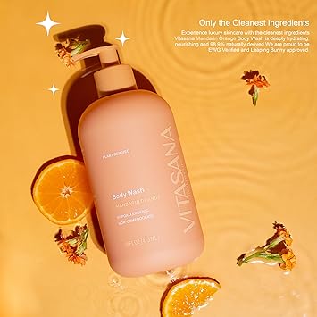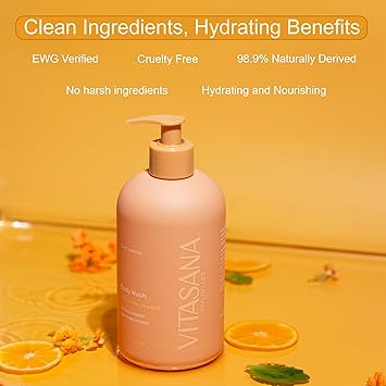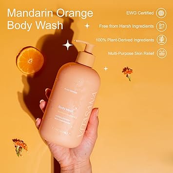 - EWG VERIFIED CLEAN FORMULA - Vitasana Mandarin Orange Body Wash meets the strict safety standards of the EWG Verified program, ensuring it’s free from harmful chemicals like parabens, sulfates, phthalates, petroleum, artificial dyes, synthetic fragrance, nickel, soy, and lanolin. One of fewer than 2,500 products globally to earn this distinction—clean skincare you can trust.