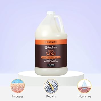 Ginger Lily Farms Botanicals Men's 3-in-1 Shampoo, Conditioner & Body Wash, 100% Vegan & Cruelty-Free, Energizing Scent, 1 Gallon (128 fl oz) Refill