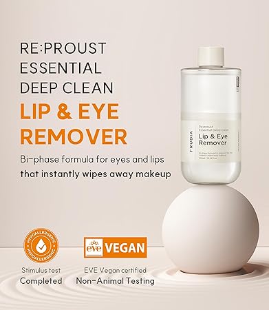 FRUDIA WELCOS Re:proust Essential Deep Clean Lip & Eye Remover | Bi Phase Vegan Lip & Eye Makeup Remover | Mascara Lipstick Remover | Korean Makeup Remover | Organic Gentle Makeup Remover 10.14 fl oz