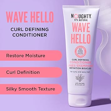 Noughty 97% Natural Wave Hello Curl Defining Conditioner, to Condition, Soften and Define Curls with Sea Kelp Extract and Avocado Oil, Sulphate Free Vegan Haircare 250ml