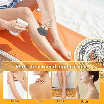 - MULTI-PURPOSE TANNING & MAKEUP TOOL: Designed for self-tanner application, sunscreen blending, and full-body makeup. Works seamlessly with tanning foam, lotion, powder, and liquid formulas. The oversized fluffy brush head saves 30% product vs. hands - minimal waste, maximum coverage. Ideal for contouring, bronzing, and evening skin tone.