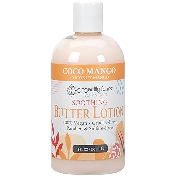 Ginger Lily Farms Botanicals Soothing Butter Lotion for Dry Skin, Coco Mango, 100% Vegan & Cruelty-Free, Coconut Mango Scent, 12 Fl Oz (Pack of 6)