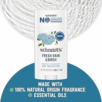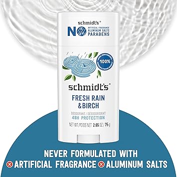Schmidt's Aluminum-Free Vegan Deodorant Fresh Rain & Birch with 24 Hour Odor Protection, for Women and Men, Natural Ingredients, Cruelty-Free, 2.65 oz