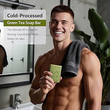 - ENRICHED WITH ORGANIC BAR SOAP ALL NATURAL: The natural soap contains a variety of natural plant oils such as olive oil, coconut oil and shea butter, which can effectively moisturize the skin, prevent dryness, and keep the skin soft and smooth. The organic green tea soap for face is perfect for men's cleansing