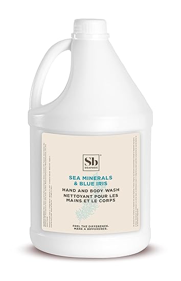 Soapbox Liquid Hand Soap & Body Wash, Sea Minerals & Blue Iris - Gentle, Moisturizing Hand & Body Cleanser, Vegan, Cruelty Free Hand Soap Refill for Bathroom, Kitchen, Professional Use - Gallon Size