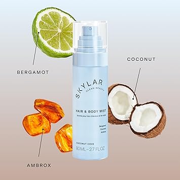 Skylar Coconut Cove Hair & Body Mist | Hypoallergenic & Clean Fragrance | Vegan, Cruelty Free, and Safe For Sensitive Skin | 80 ML, 2.7 Fl Oz