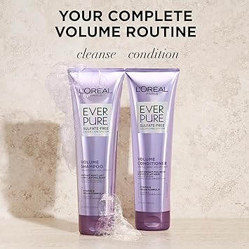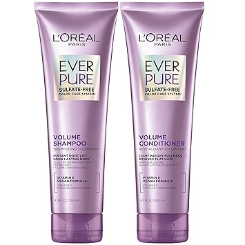 L'Oreal Paris Volume Sulfate Free Shampoo and Conditioner for Color-Treated Hair, EverPure, 8.5 Fl Oz (Set of 2)