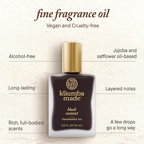 Kuumba Made Black Coconut Fragrance Oil, Long-Lasting Small-Batch Perfume Roller, Vegan, Alcohol-Free, 0.5 Fl Oz Fl Oz