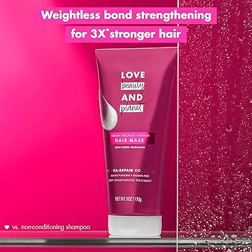 Give your hair a yummy boost of hair hydration! Get 3X stronger, hydrated healthier-looking hair* with Love Beauty and Planet's Vegan Collagen Keratin Sun-Kissed Mandarin deep conditioning treatment. This miracle hair mask, powered by our HYDRA-REPAIR Complex with clean hair nutrients, plant-based detanglers, and natural bond strengtheners, works to nourish and treat visibly damaged hair in just 5 minutes, boosting resiliency and shine. Plus it helps strengthen weakened hair bonds over time, making hair easier to manage and style. Like all Love Beauty and Planet hair products made with clean ingredients, it's PETA-certified cruelty-free and vegan, sulfate-free, silicone-free, paraben-free, dye-free and formulated without phthalates and microplastics. Plus, this nourishing formula is 97% naturally-derived and 100% biodegradable**. How to Use: Spread on wet hair, wait 2 minutes or more, rinse and go easy on the tap. For best results, use after Love Beauty and Planet's Vegan Keratin & Sun-Kissed Mandarin 5-in-1 Multi-Beneift Shampoo. On a mission to clean up beauty for all - enjoy more good hair days with Love Beauty and Planet's clean formulas, indulgent fragrances & a little love for the planet! *vs. non-conditioning shampoo. **Ingredient biodegradation based on OECD test methods (301, 302 and/or 310) and Principles.