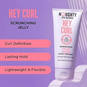 Noughty 97% Natural Hey Curl Scrunching Jelly, Hydrating Frizz Control Formula for Curly and Wavy Hair with Sea Kelp and Irish Moss, Sulphate Free Vegan Haircare 200ml