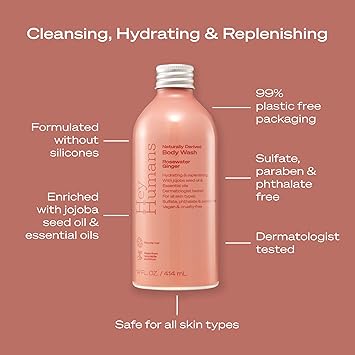 - Hey Humans body washes are everyone's body washes. Our naturally-derived, vegan body wash is made with jojoba seed oil and glycerin for a gentle, moisturizing shower gel you can feel good about.